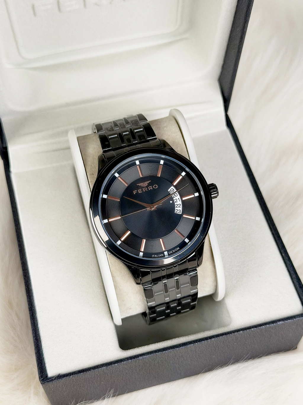 Günün her anında zarafetle taşıyabileceğiniz bu saat, ofisten davete kadar stilinizi tamamlar. Ferro ile zamanı değil, tarzınızı seçin.