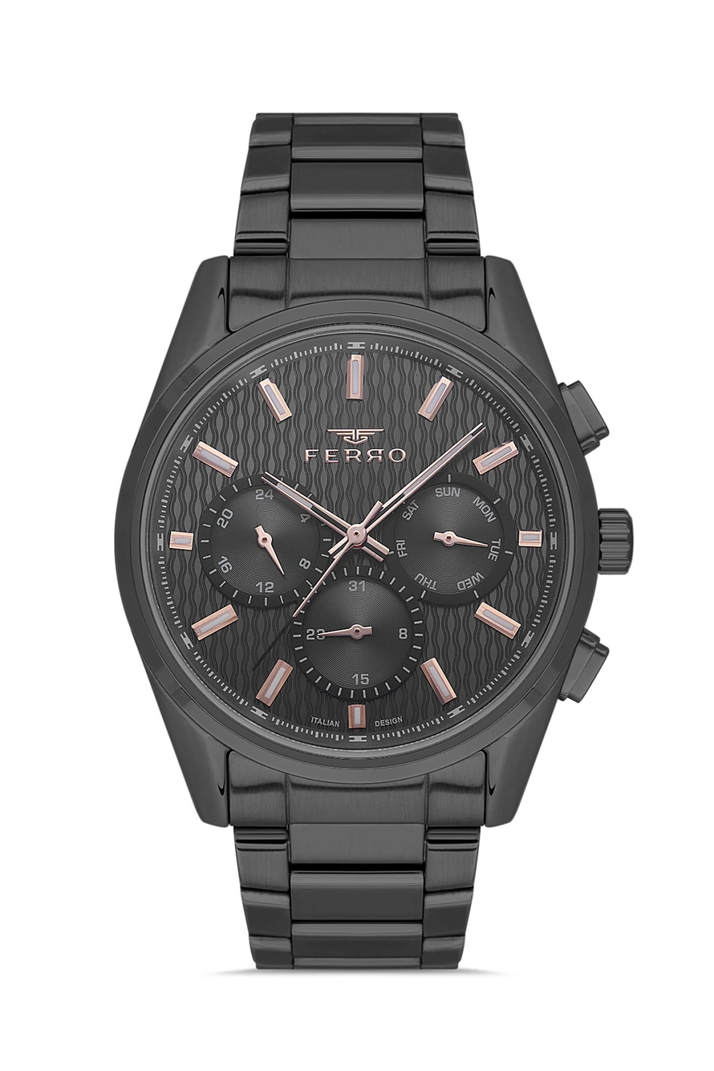 ⏱️ Ferro Ferro Siyah Çelik Kordon Erkek Kol Saati FM43031A-V Tüm Fonksiyonlar Aktif 3ATM Su Geçirmez – Su Geçirmez, 2 Yıl Garantili, Japon Mekanizmalı Saatler