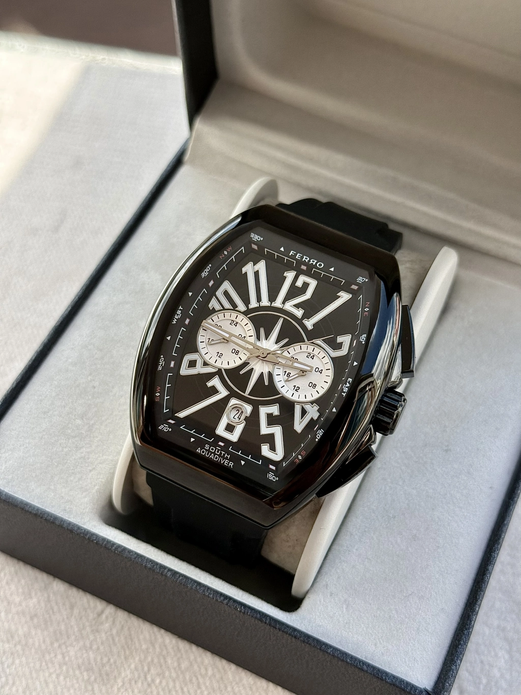 FERRO Ferro Siyah Silikon Kordon Erkek Kol Saati FM11444D-G Fonksiyonları Aktif 3ATM Su Geçirmez — Işıltılı Stil, Zarif Dokunuş