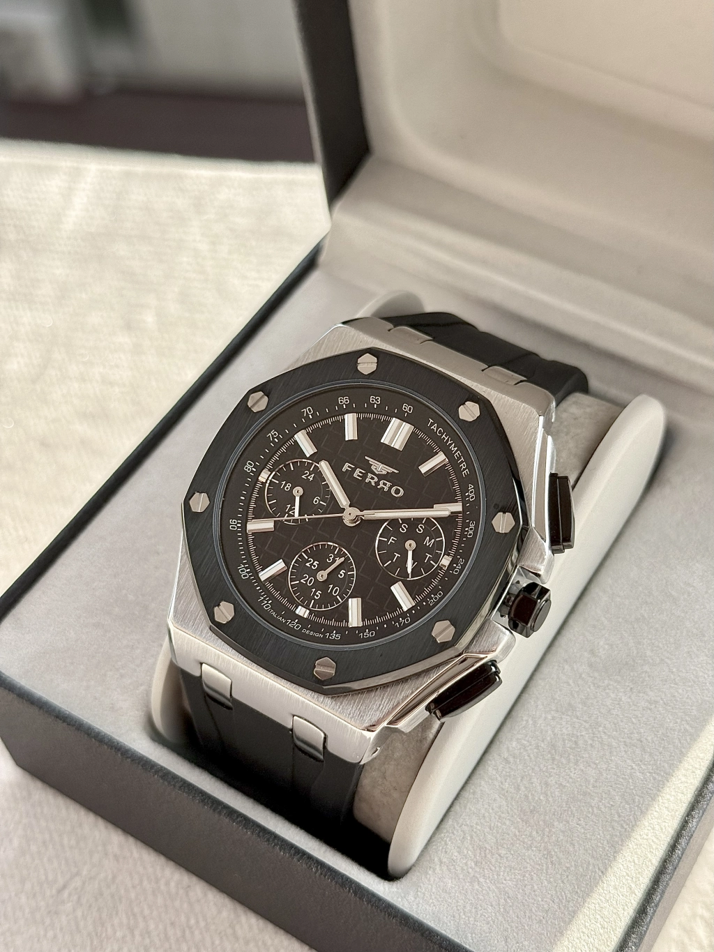 FERRO Ferro Siyah Silikon Kordon Erkek Kol Saati FM43001D-J Tüm Fonksiyonlar Aktif 3 ATM Su Geçirmez — Işıltılı Stil, Zarif Dokunuş