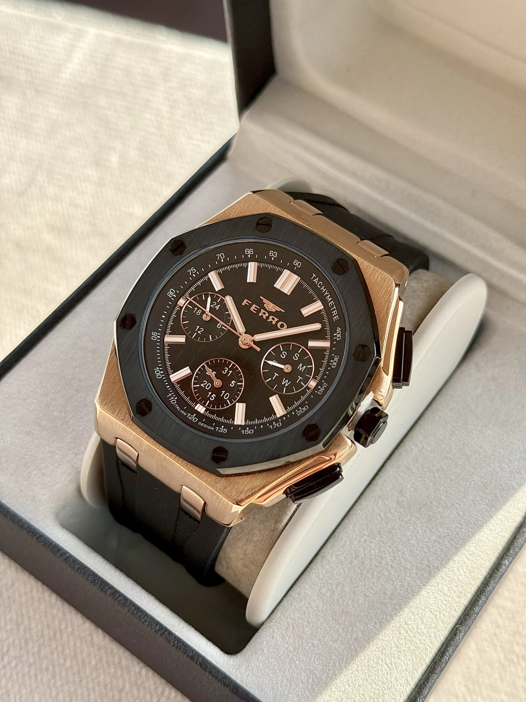 Günün her anında zarafetle taşıyabileceğiniz bu saat, ofisten davete kadar stilinizi tamamlar. Ferro ile zamanı değil, tarzınızı seçin.