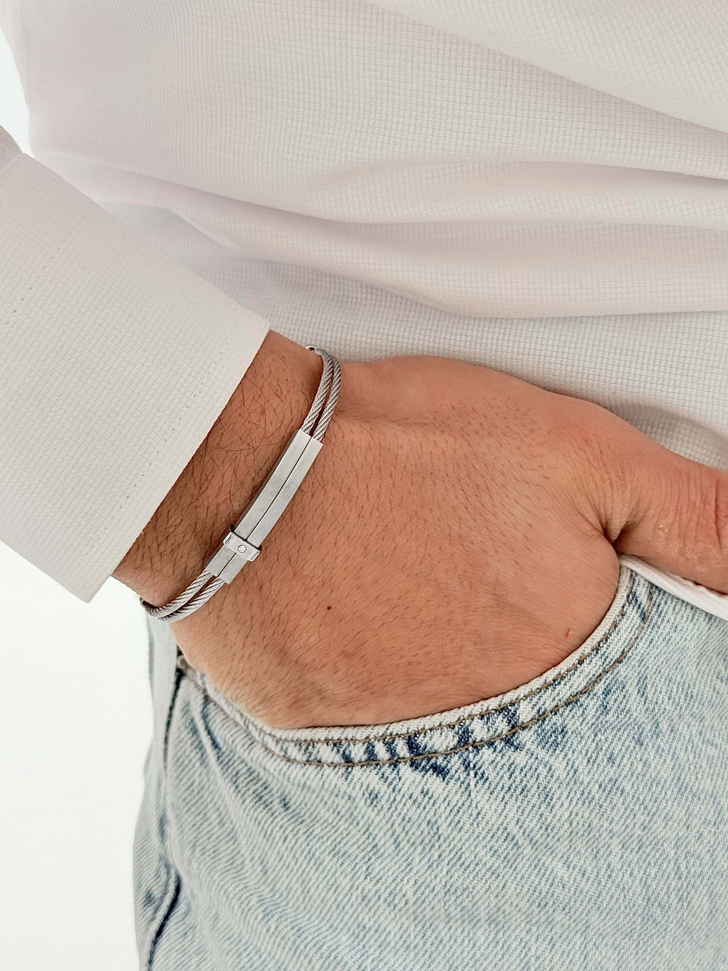 Paslanmaz çelikten üretilmiş bu şık model; sade ama dikkat çekici tasarımıyla her bilekte prestij sunar. Parlak yüzeyi ve sağlam yapısıyla hem görsel olarak güçlü hem de dayanıklı.