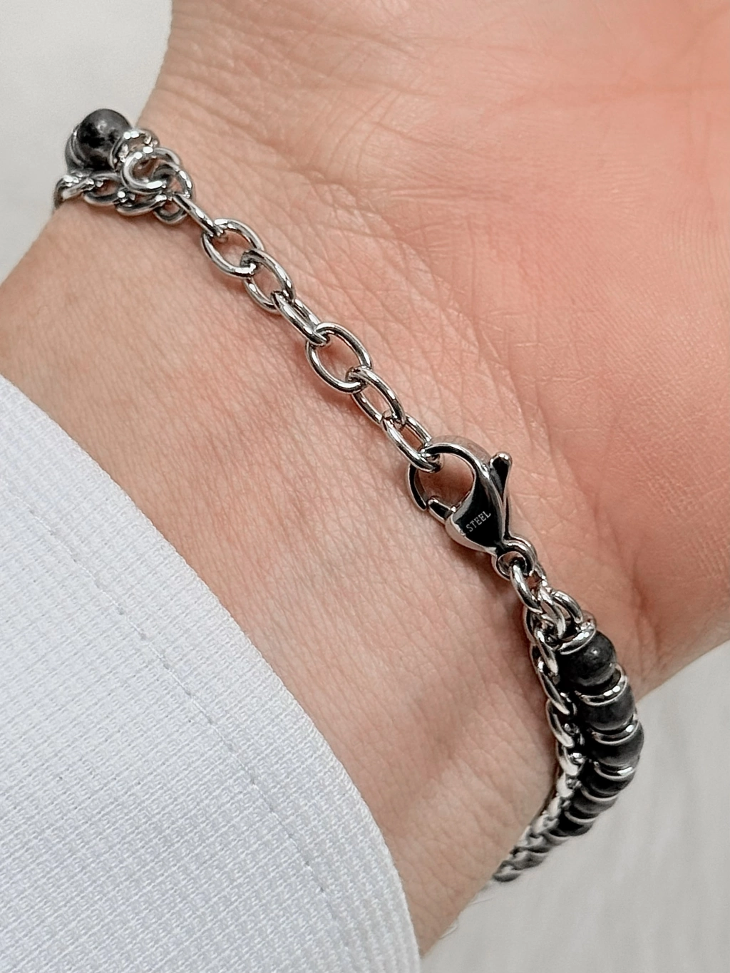 Gümüş ve Gri Çelik Erkek Bileklik FRJ10168A-A 2 Yıl Garantili Hediye Paketli