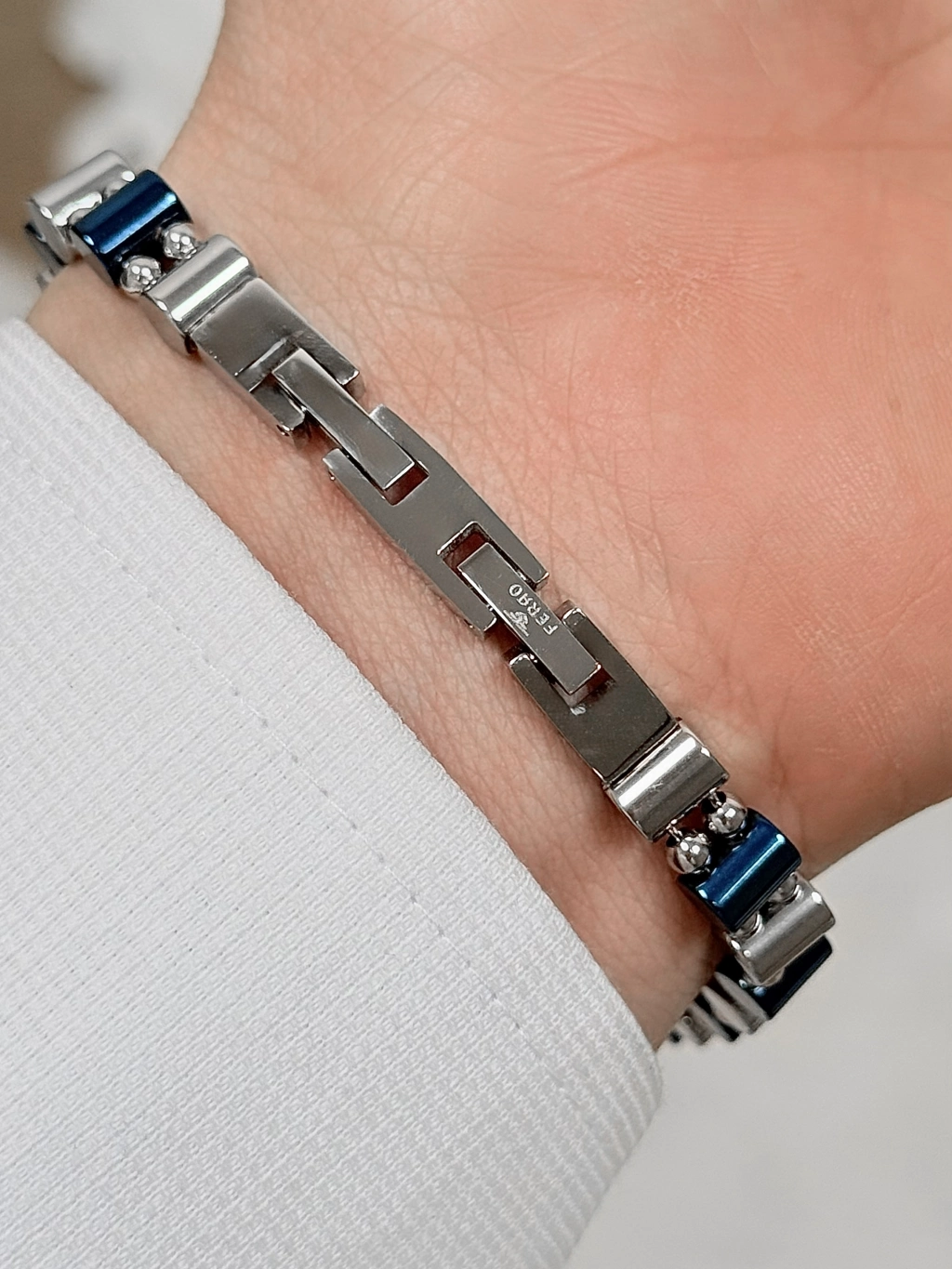 FERRO Gümüş ve Lacivert Çelik Erkek Bileklik FRJ10154A-L 2 Yıl Garantili Hediye Paketli — Işıltılı Stil, Zarif Dokunuş