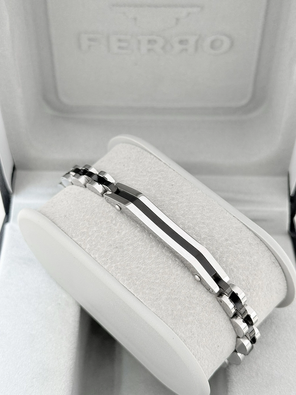 FERRO Gümüş ve Siyah Çelik Erkek Bileklik FRJ10126A-J 2 Yıl Garantili Hediye Paketli — Işıltılı Stil, Zarif Dokunuş