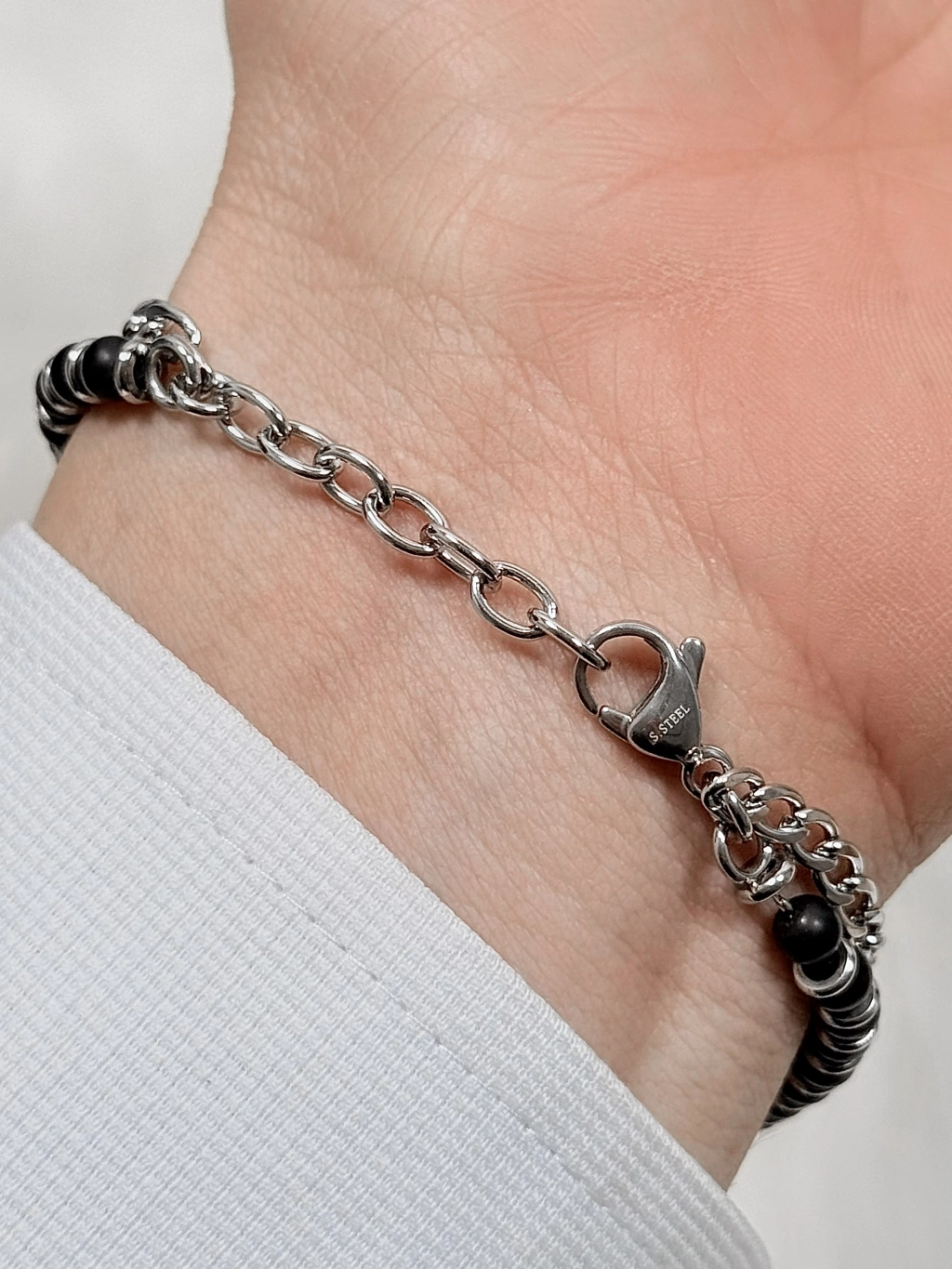 Paslanmaz çelikten üretilmiş bu şık model; sade ama dikkat çekici tasarımıyla her bilekte prestij sunar. Parlak yüzeyi ve sağlam yapısıyla hem görsel olarak güçlü hem de dayanıklı.