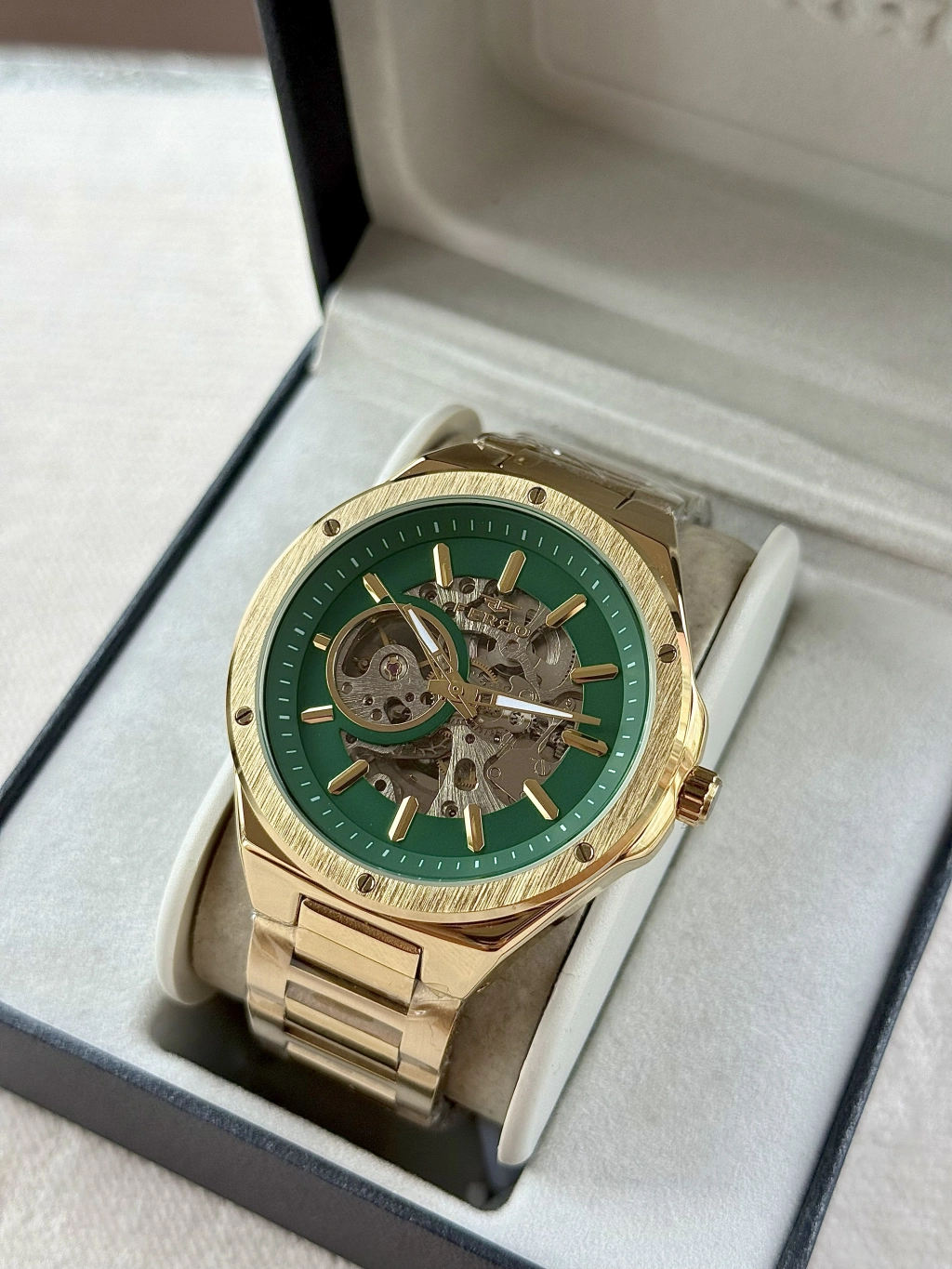Tek ton sarı paslanmaz çelikten üretilmiş bu şık model; sade ama dikkat çekici tasarımıyla her bilekte prestij sunar. Parlak yüzeyi ve sağlam yapısıyla hem görsel olarak güçlü hem de dayanıklı.