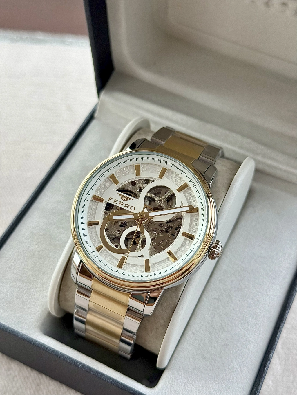 Günün her anında zarafetle taşıyabileceğiniz bu saat, ofisten davete kadar stilinizi tamamlar. Ferro ile zamanı değil, tarzınızı seçin.