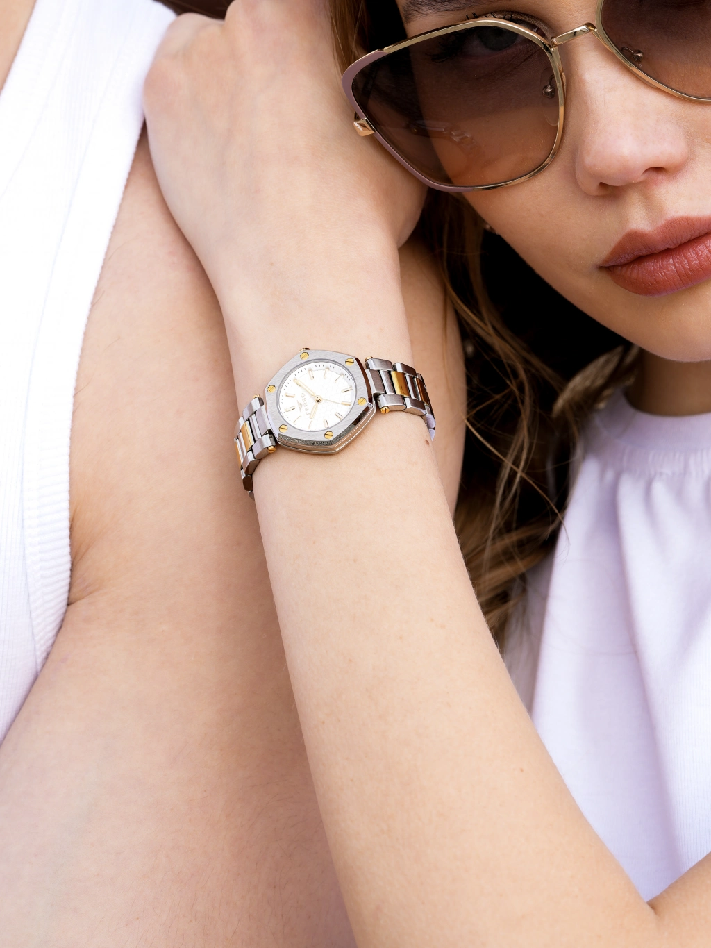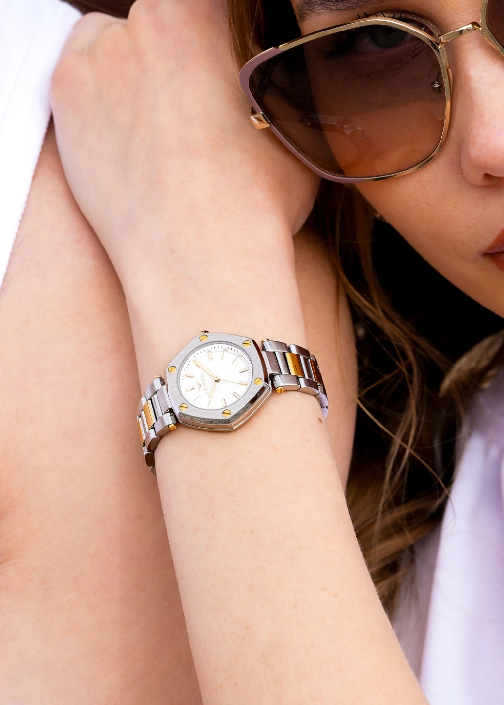 FERRO Ferro Sarı ve Gümüş Çelik Kordon Kadın Kol Saati FL43006A-D 3ATM Su Geçirmez 2 Yıl Garantili — Işıltılı Stil, Zarif Dokunuş