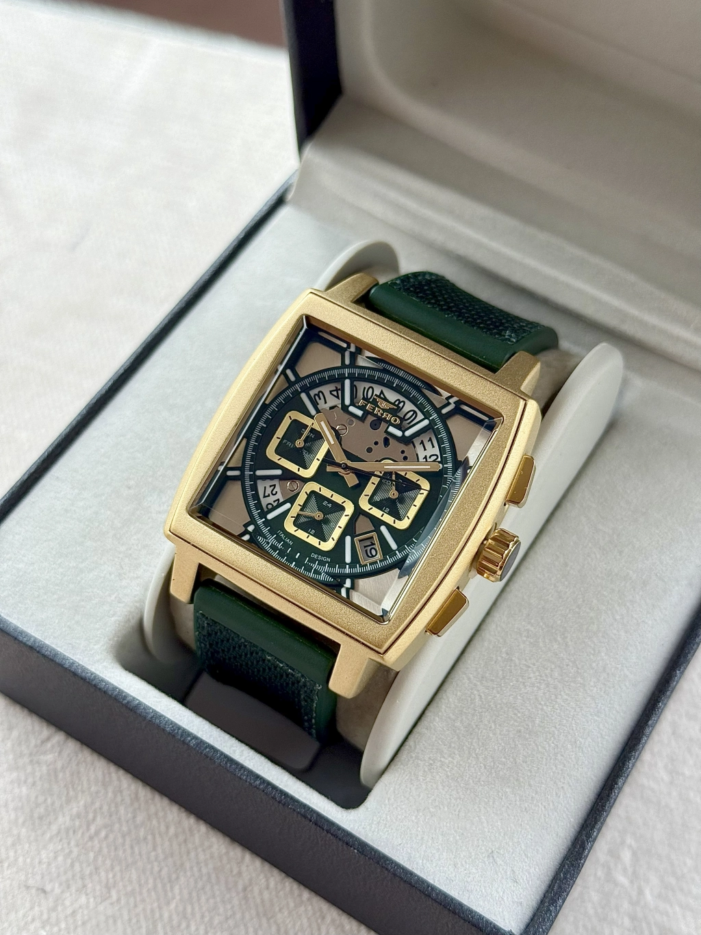 Japon Quartz Makine ile donatılmış olan Ferro Ferro Yeşil Silikon Kordon Erkek Kol Saati FM11553DWT-ZR6 Fonksiyonları Aktif 3 ATM Su Geçirmez, yüksek hassasiyetli zaman ölçümü sunar. Uzun ömürlü pil gücü ve sessiz çalışma performansıyla mükemmel bir deneyim yaşatır.