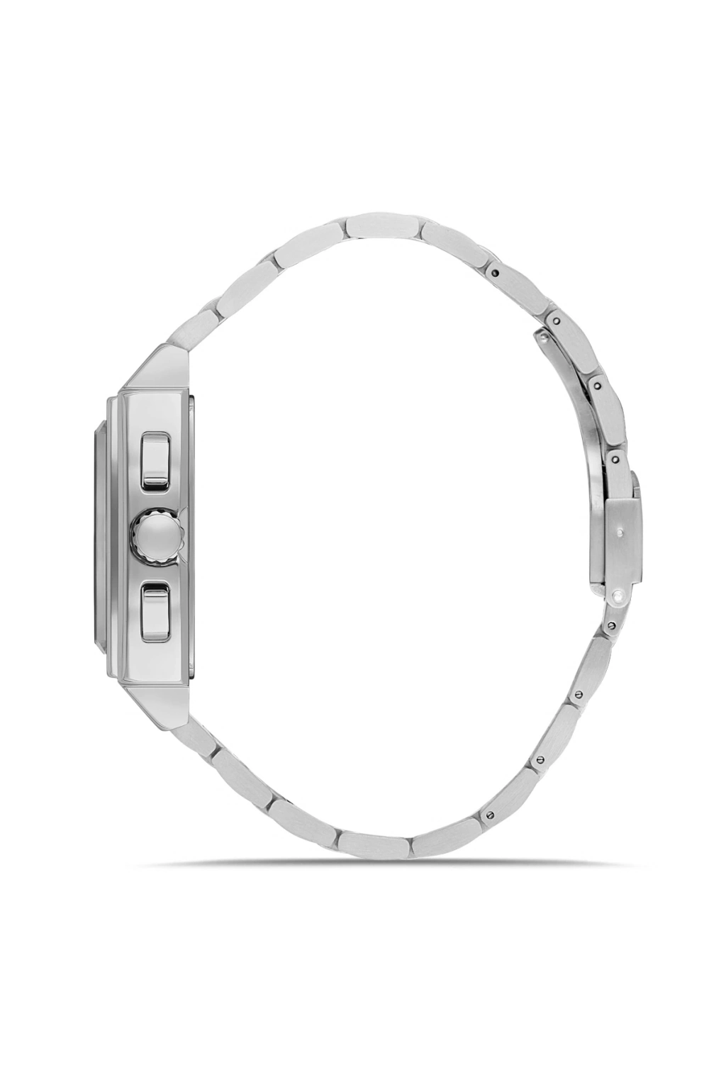 Paslanmaz çelikten üretilmiş bu şık model; sade ama dikkat çekici tasarımıyla her bilekte prestij sunar. Parlak yüzeyi ve sağlam yapısıyla hem görsel olarak güçlü hem de dayanıklı.