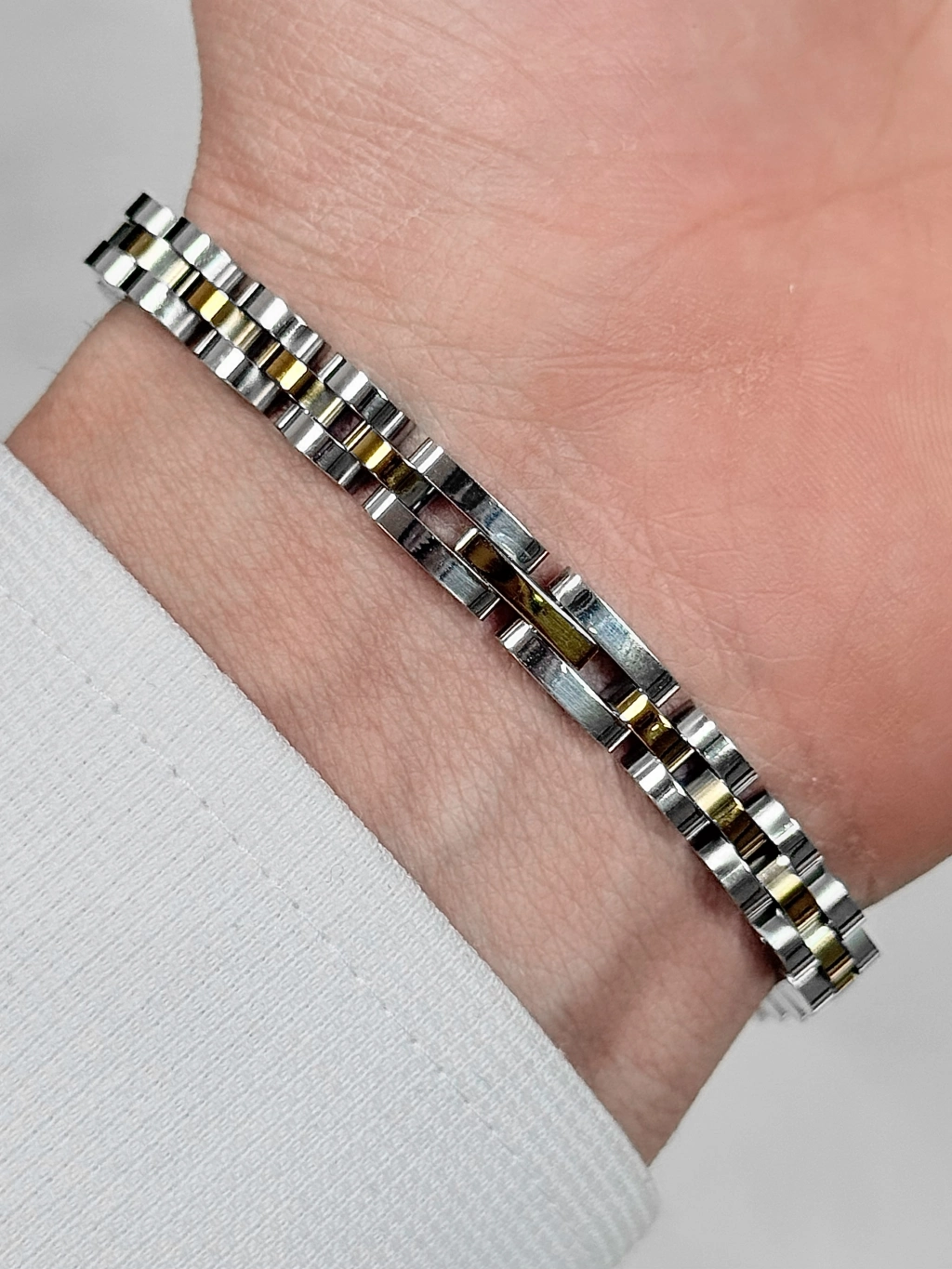Paslanmaz çelikten üretilmiş bu şık model; sade ama dikkat çekici tasarımıyla her bilekte prestij sunar. Parlak yüzeyi ve sağlam yapısıyla hem görsel olarak güçlü hem de dayanıklı.