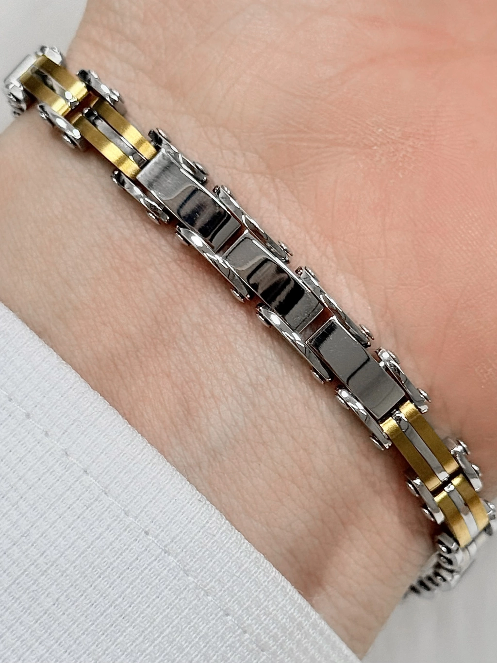 Sarı ve Gümüş Çelik Erkek Bileklik FRJ10173A-D 2 Yıl Garantili Hediye Paketli