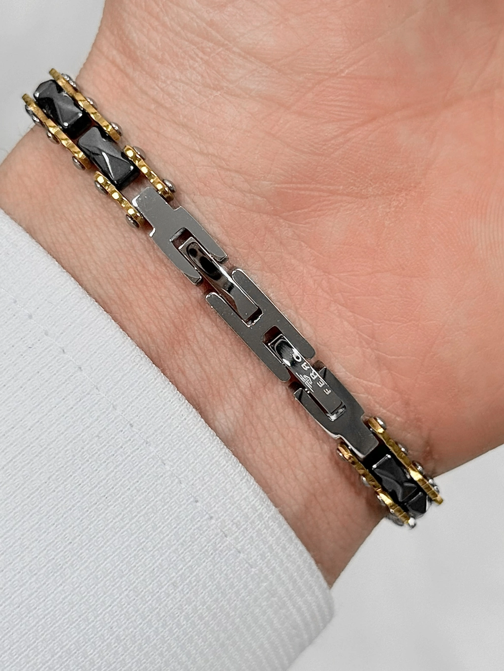 FERRO Sarı ve Siyah Çelik Erkek Bileklik FRJ10147A-B2 2 Yıl Garantili Hediye Paketli — Işıltılı Stil, Zarif Dokunuş
