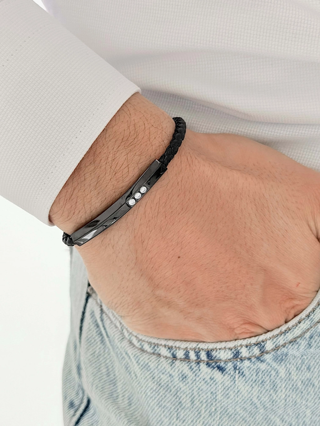FERRO Siyah Çelik Deri Erkek Bileklik FRJ10190B-G 2 Yıl Garantili Hediye Paketli — Işıltılı Stil, Zarif Dokunuş
