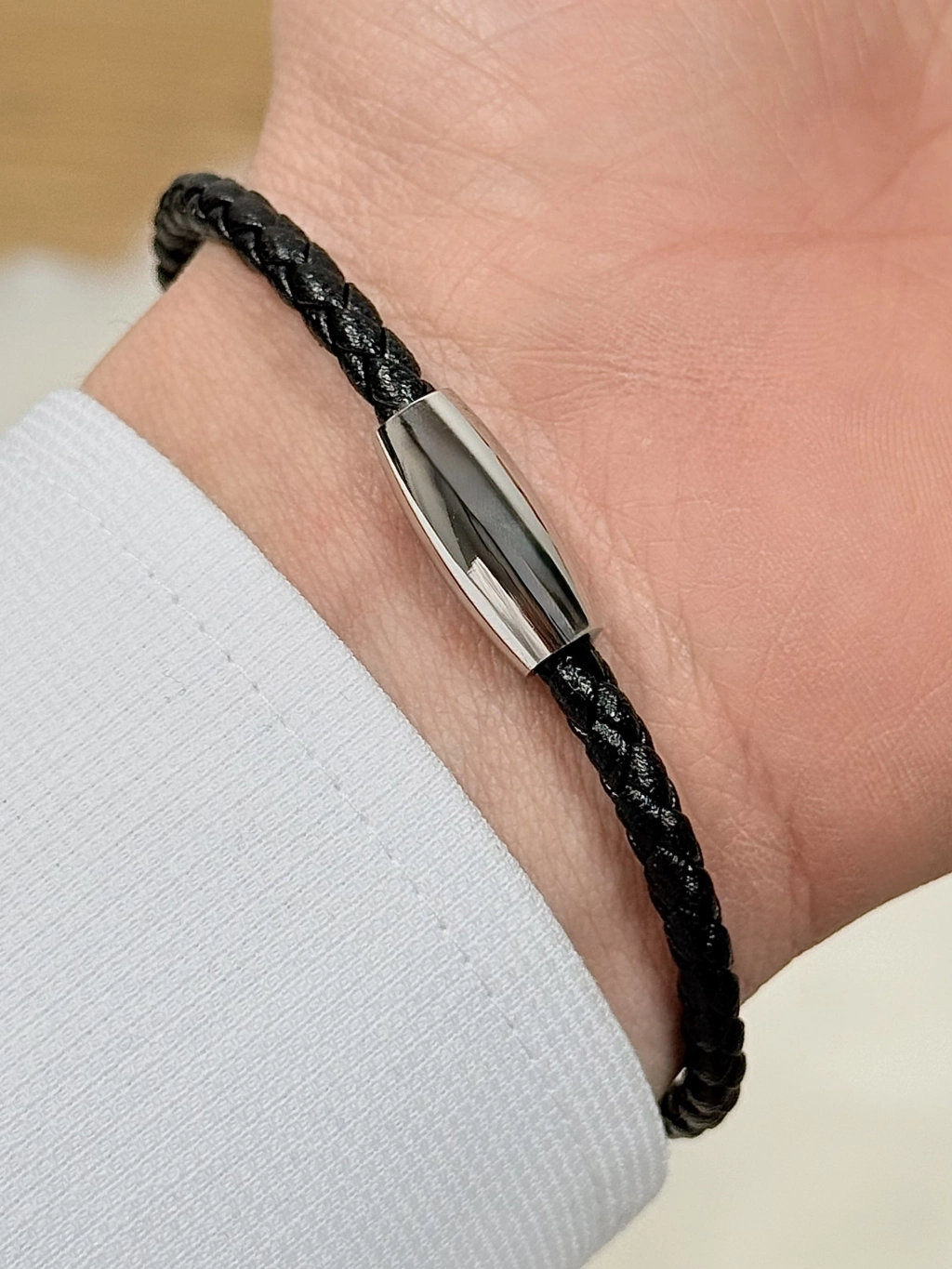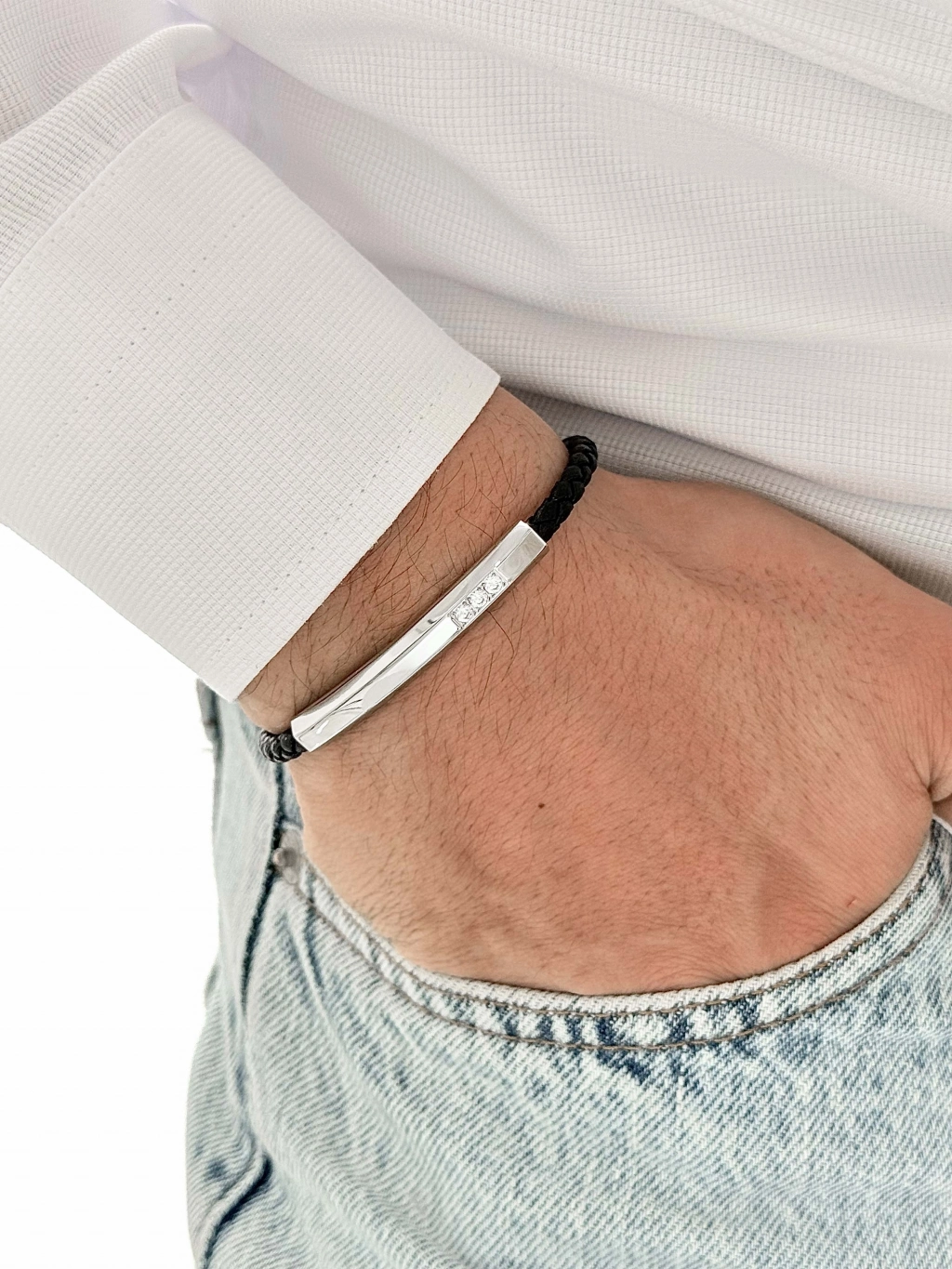 FERRO Siyah ve Gümüş Çelik Deri Erkek Bileklik FRJ10190B-J 2 Yıl Garantili Hediye Paketli — Işıltılı Stil, Zarif Dokunuş