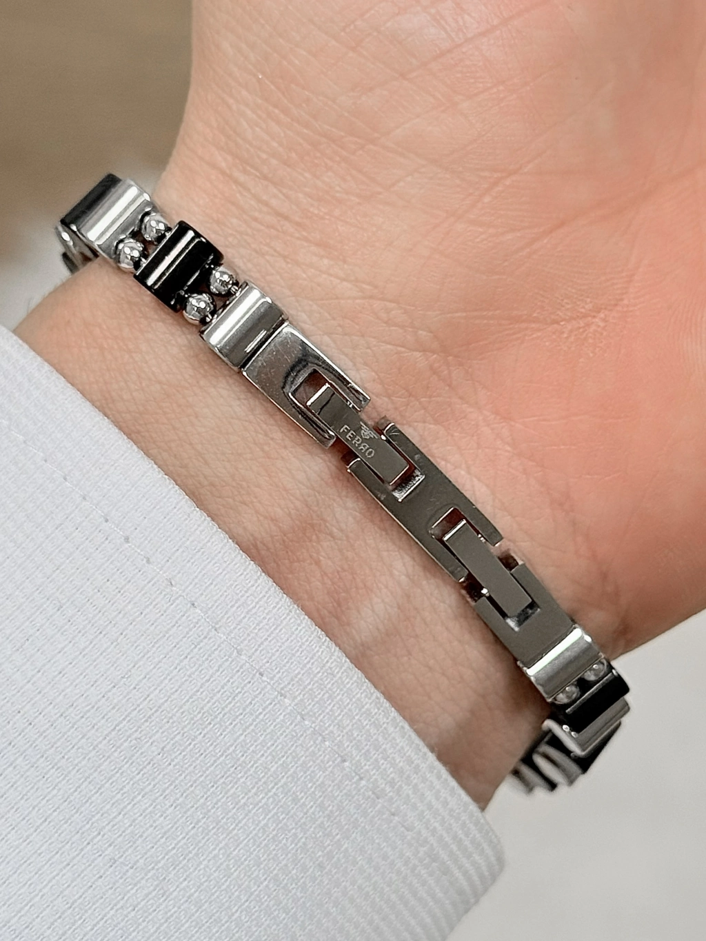 FERRO Siyah ve Gümüş Çelik Erkek Bileklik FRJ10154A-J 2 Yıl Garantili Hediye Paketli — Işıltılı Stil, Zarif Dokunuş