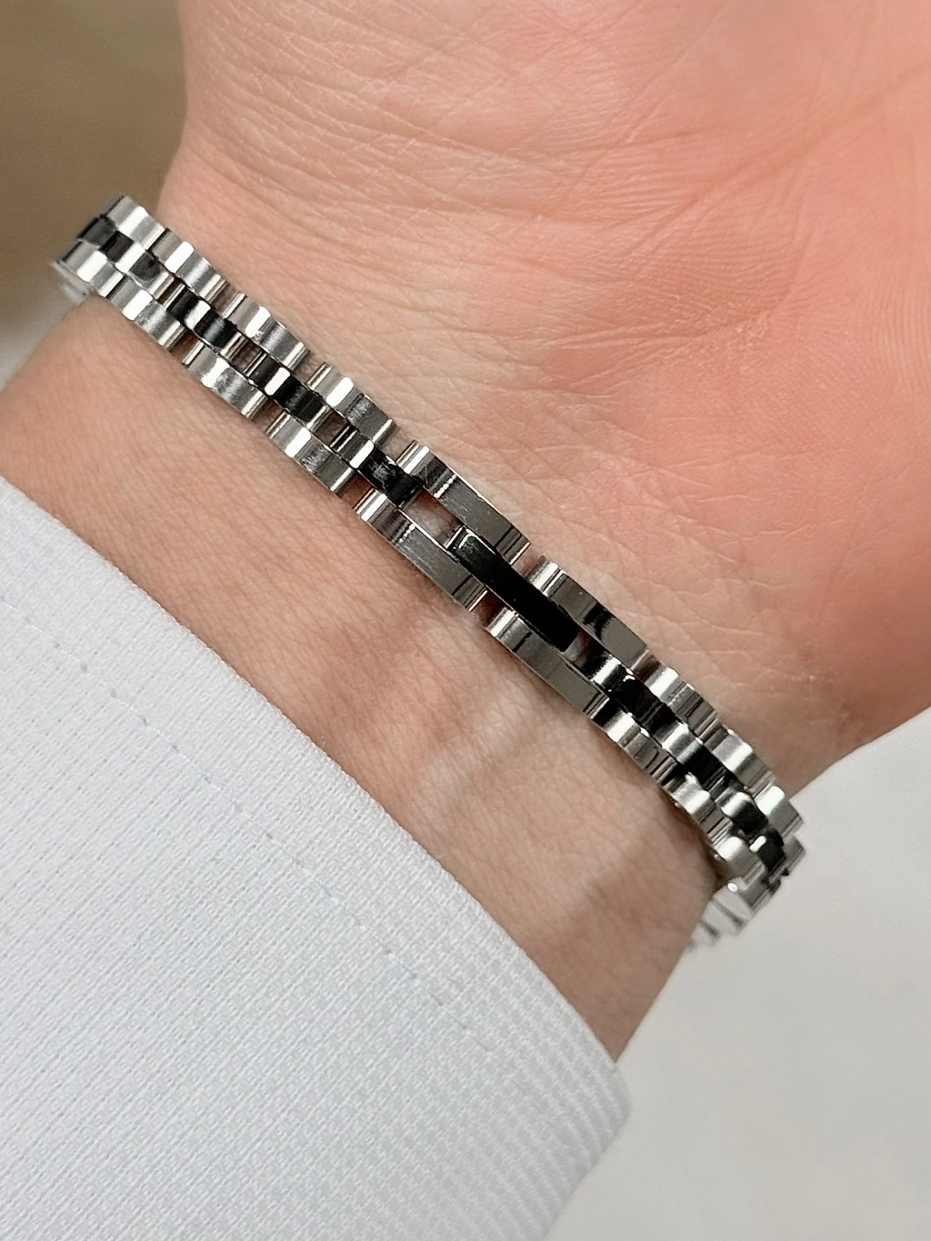 Paslanmaz çelikten üretilmiş bu şık model; sade ama dikkat çekici tasarımıyla her bilekte prestij sunar. Parlak yüzeyi ve sağlam yapısıyla hem görsel olarak güçlü hem de dayanıklı.