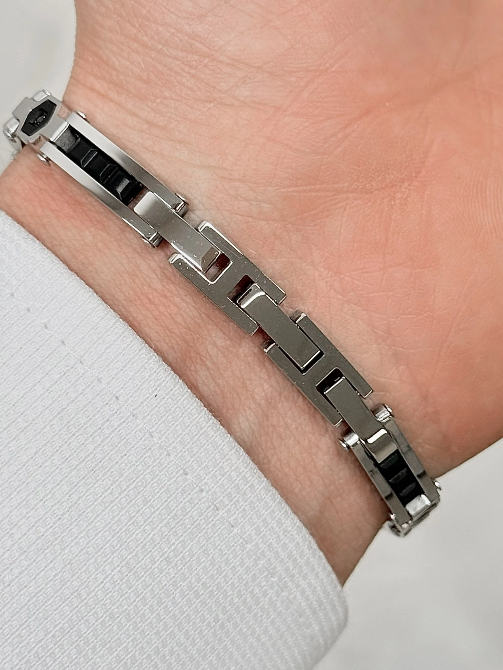 Paslanmaz çelikten üretilmiş bu şık model; sade ama dikkat çekici tasarımıyla her bilekte prestij sunar. Parlak yüzeyi ve sağlam yapısıyla hem görsel olarak güçlü hem de dayanıklı.