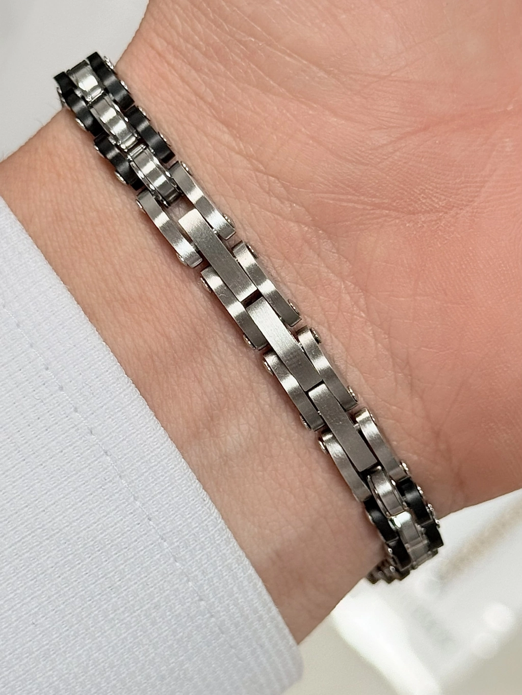 Paslanmaz çelikten üretilmiş bu şık model; sade ama dikkat çekici tasarımıyla her bilekte prestij sunar. Parlak yüzeyi ve sağlam yapısıyla hem görsel olarak güçlü hem de dayanıklı.